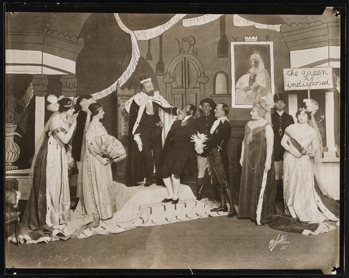 [Mary Haswell as The Archduchess of Greenwich and Leslie Palmer as The Prince in "The Young Visitors".]
