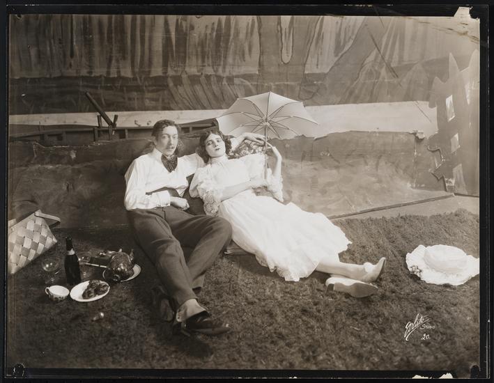 [Herbert Yost as Mr. Salteena and Marie Goff as Ethel Monticue in "The Young Visitors".]