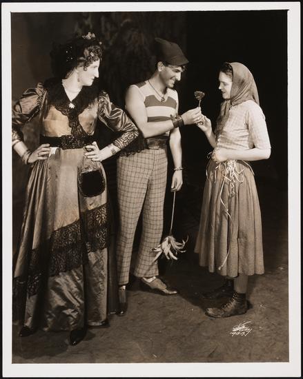 [Walter Beck as Ficzur (The Sparrow), Eva Le Gallienne as Julie and Joseph Schildkraut in the title role of "Liliom".]