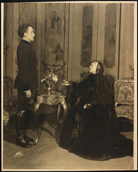 [Harold Moulton as Medvedenko and Eva Le Gallienne as Masha in "The Seagull".]