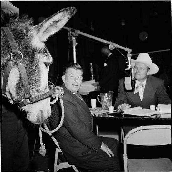 Arthur Godfrey [Godfrey petting a donkey, likely during his show, Arthur Godfrey's Talent Scouts.]