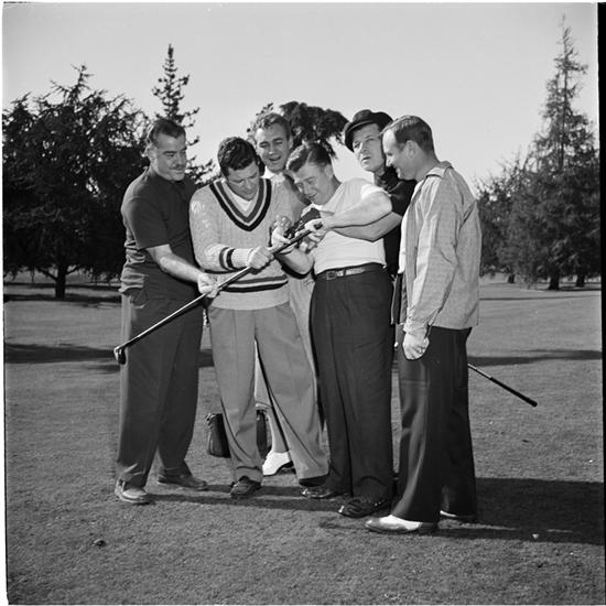 Arthur Godfrey [Godfrey walking in a golf course.]