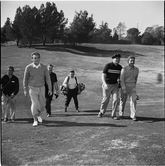 Arthur Godfrey [Godfrey walking in a golf course.]