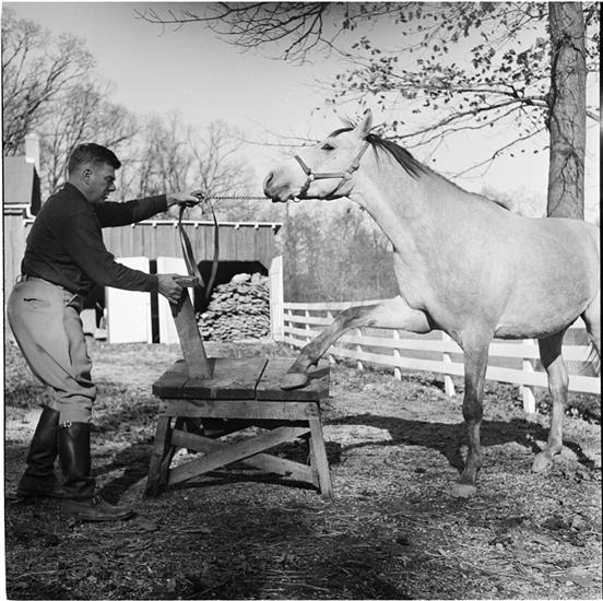 Arthur Godfrey [Godfrey with a horse on a farm.]