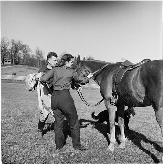 Arthur Godfrey [Godfrey helping a woman mount a horse.]