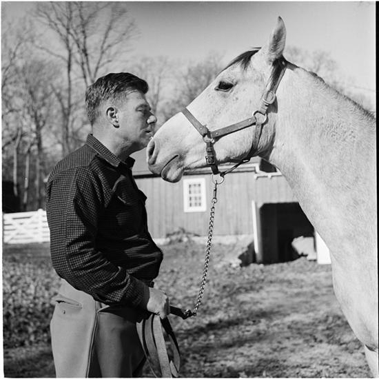 Arthur Godfrey [Godfrey with a horse on a farm.]