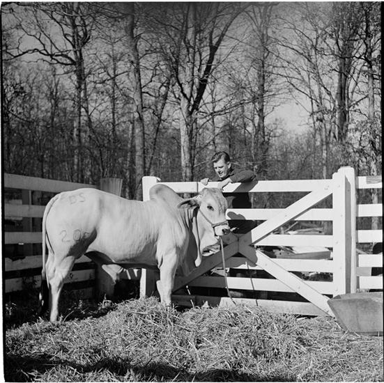 Arthur Godfrey [Godfrey on a farm, with a cow.]