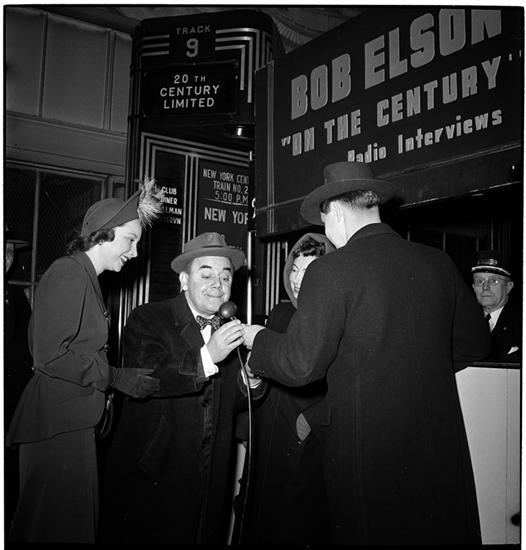 [Bob Elson - 'On the Century' - 20th Century Limited, Radio Interviews. Elson interviewing a man]