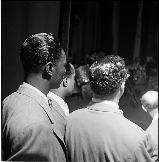 Swing Band Contest Sponsored by LOOK [Group of men backstage.]