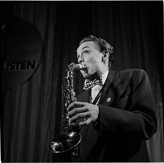 Swing Band Contest Sponsored by LOOK [Man playing the saxophone.]