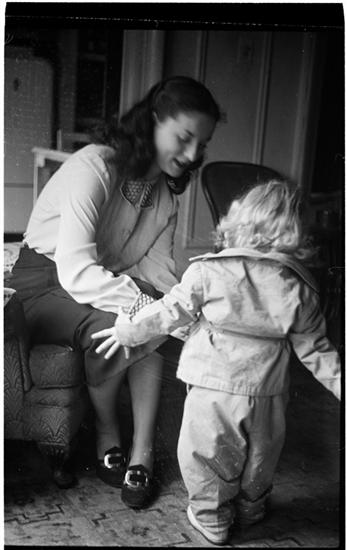 Show Girl [Rosemary Williams zipping a child's jacket.]
