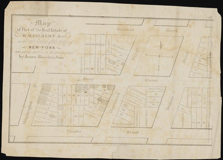 Map of Property in the 9th Ward in the City of New - York Belonging to the Estate of W. W. Gilbert, decd. to be sold at Auction by James Bleecker & Sons on the 21st January 1833.