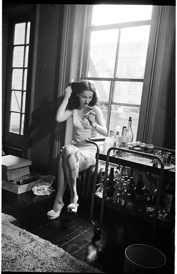 Show Girl [Rosemary Williams brushing her hair in front of a window.]