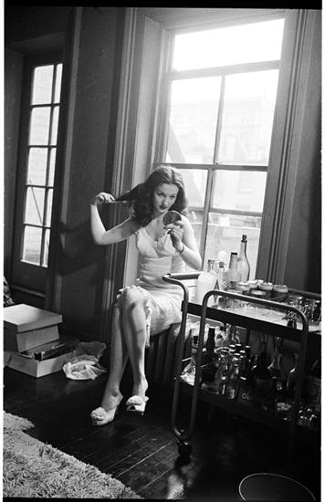 Show Girl [Rosemary Williams brushing her hair in front of a window.]
