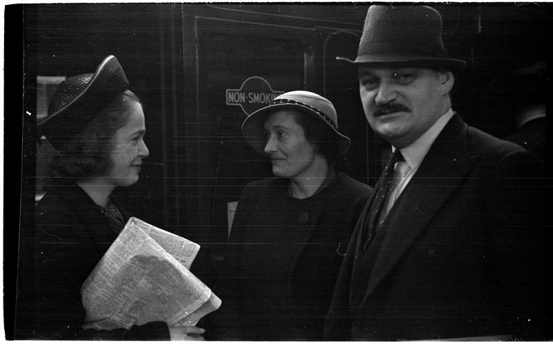 [Felicia Marsh waiting with unidentified man and woman at train station.]