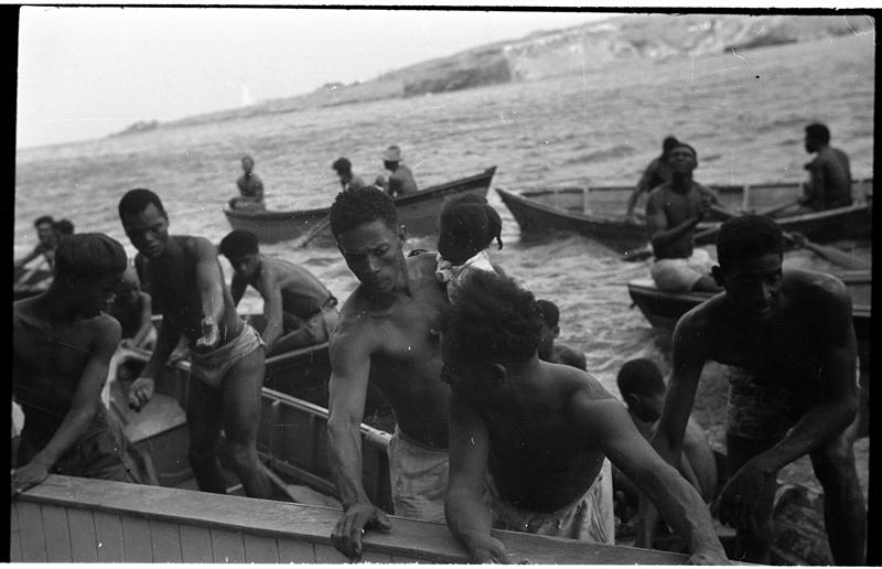 [Man rowing boat in the Caribbean.]