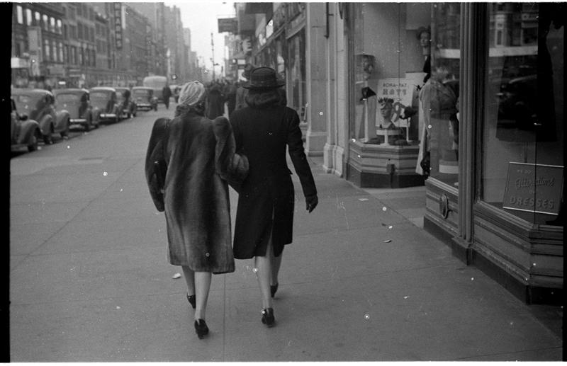 [Women walking down street.]