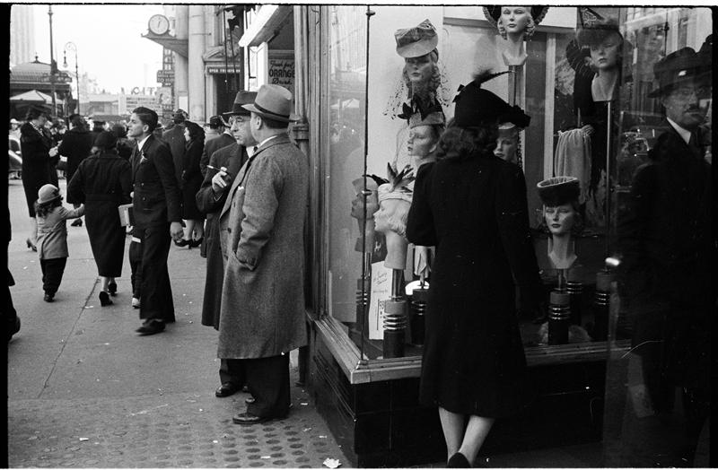 [Women looking at window display on 14th Street.]