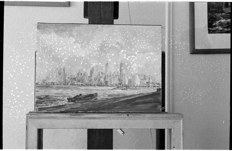 [Painting of waterfront and Manhattan skyline by Reginald Marsh.]