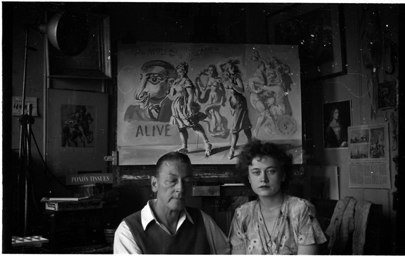 [Paintings by Reginald Marsh, unidentified men, and Felicia Marsh with unidentified woman.]