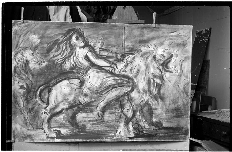 [Painting of a woman on a carousel horse by Reginald Marsh.]