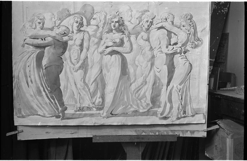 [Signed painting of a waterfront scene by Reginald Marsh.]