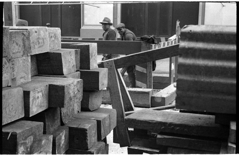[Scenes of waterfronts, window shopping, street repair and two women.]