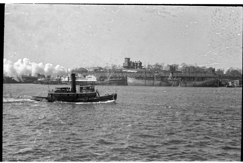 [Manhattan Lighterage Corp. tugboat in New York Harbor.]