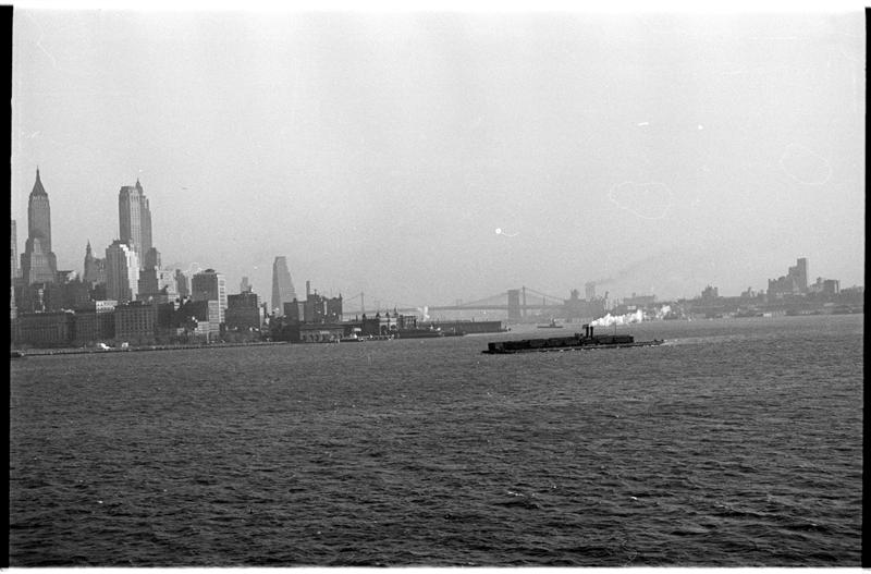 [Manhattan and Brooklyn skylines from New York Harbor.]
