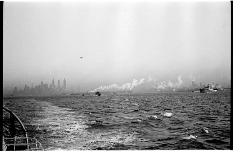 [New York Harbor and Manhattan and Brooklyn skylines.]