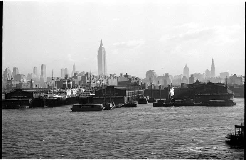 [View of Manhattan waterfront and skyline from the Hudson River.]