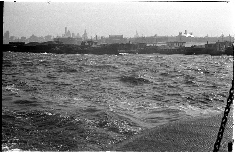 [Tracy Towing Corporation tugboat pulling McLain Line barges in New York Harbor.]