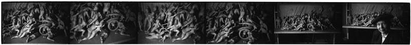 [Sculpture of rape and pillage and images of unidentified landscape painters.]