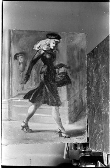 [Signed painting of a woman walking down the street by Reginald Marsh.]