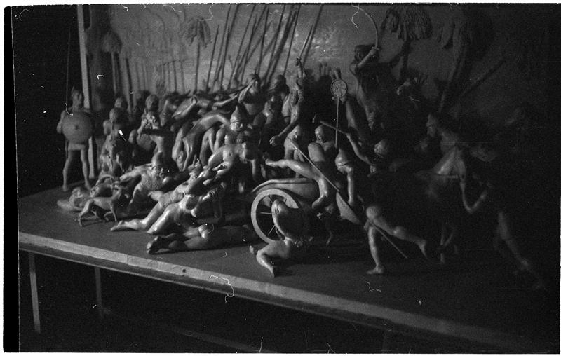 [Sculpture of rape and pillage and images of unidentified landscape painters.]