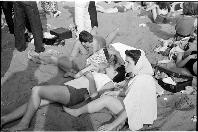[Teenagers relaxing on Coney Island beach.]