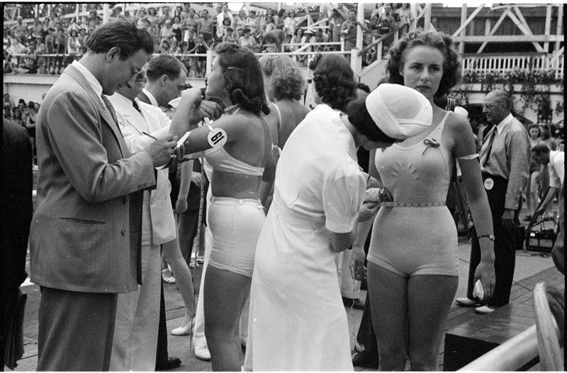 [Beauty contestant at Modern Venus Contest sitting down with trophy.]