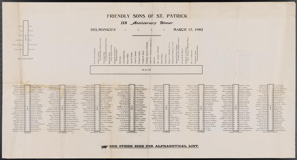 Friendly Sons of St. Patrick in the City of New York [118th anniversary dinner.]