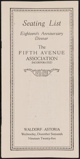 Eighteenth Anniversary Dinner of the Fifth Avenue Association