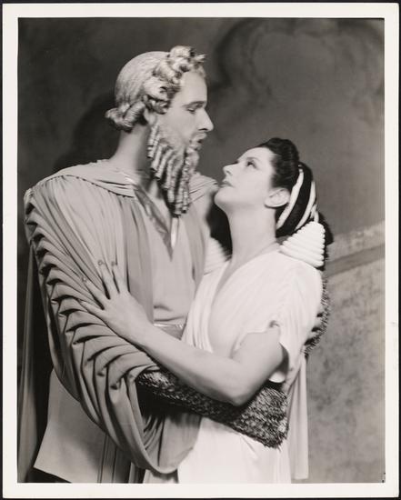 [Alfred Lunt as Jupiter and Lynn Fontanne as Alkmena in "Amphitryon 38".]