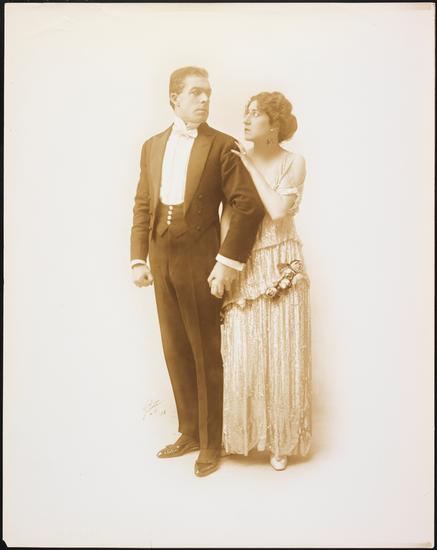 [William Faversham as Comte Dasetta and Mlle. Gabrielle Dorziat as Mariana in "The Hawk".]