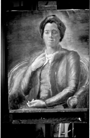 [Portrait of a woman and paintings by Reginald Marsh.]