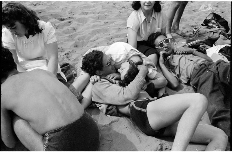 [Couples relaxing on Coney Island beach.]