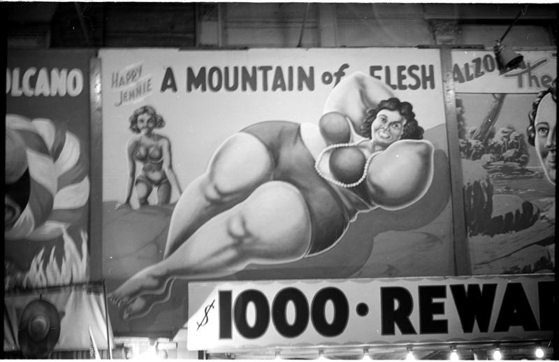 [Views of Coney Island sideshow.]