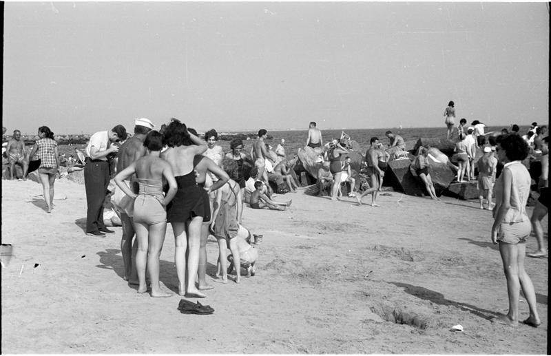[People relaxing at Coney Island beach.]