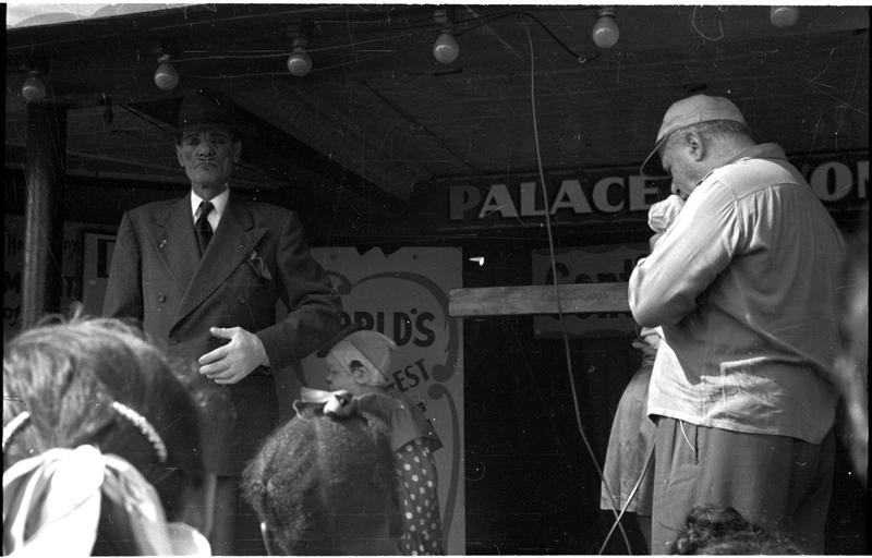 [Palace of Wonders sign featuring Milo the Mule Face Boy.]