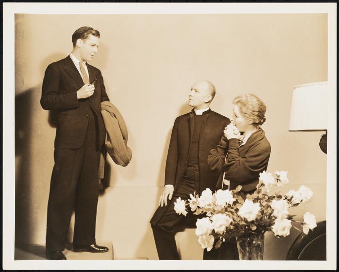 [Alla Nazimova as Mrs. Helen Alving, Harry Ellerbe as Oswald Alving and McKay Morris as Pastor Manders in "Ghosts".]