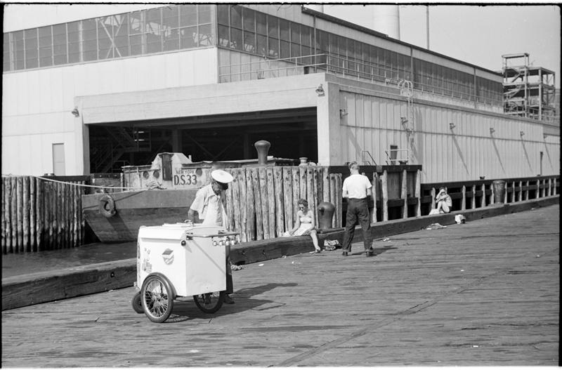 [People waiting on the dock of the Hoboken Ferry Terminal.]