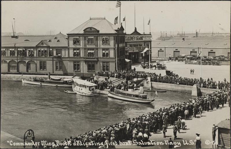 Crowds going on Excursion Boat for Coney Island, New York.