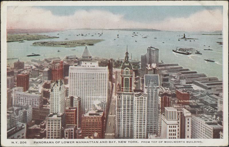 Broadway Downtown and Entrance to Harbor as Seen from the Woolworth Tower, New York;